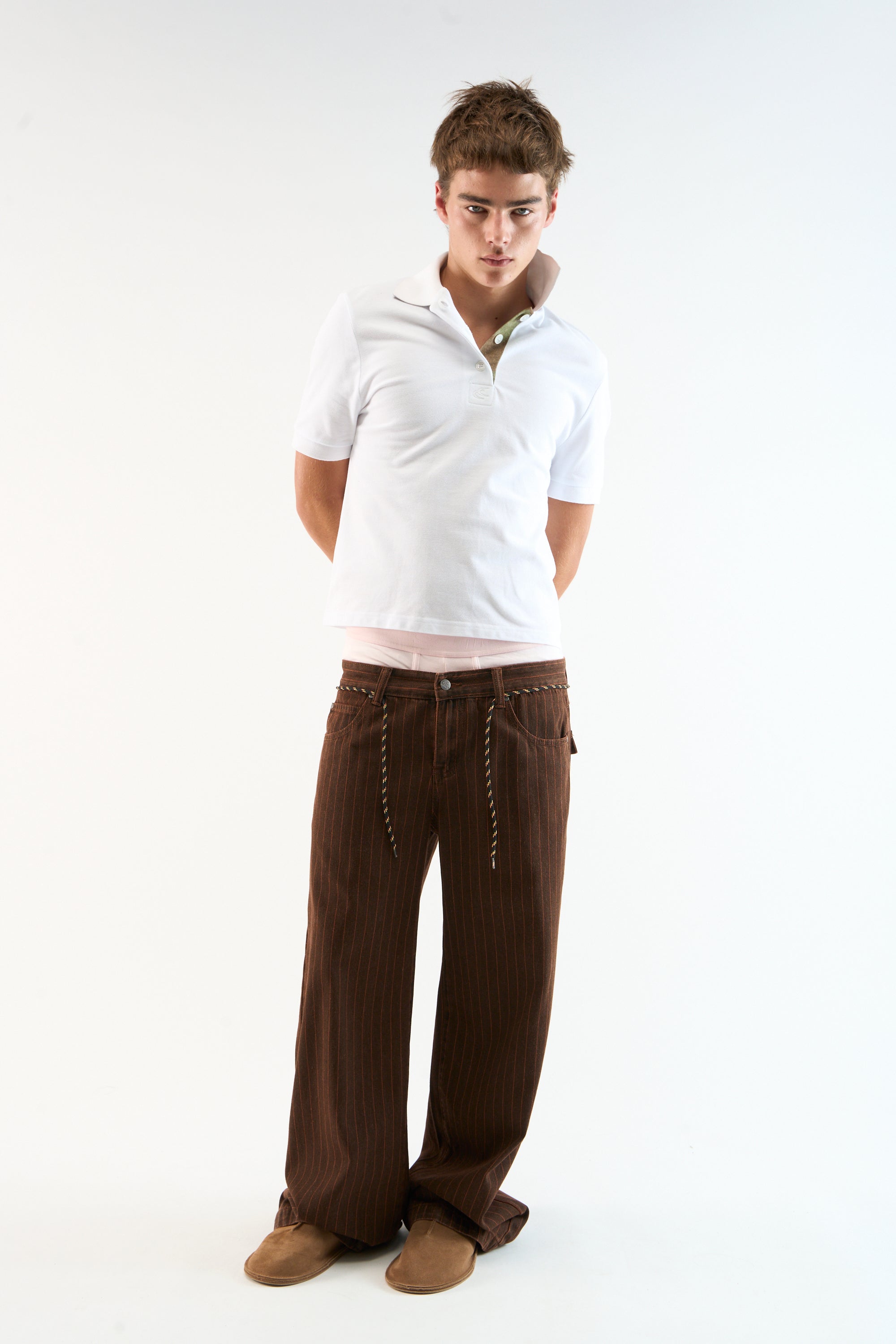White cropped polo shirt in textured cotton piqué with short sleeves. Features a spread collar, four-button placket with camouflage print inner detail, and tonal embroidered logo at chest. Straight hem with relaxed fit.