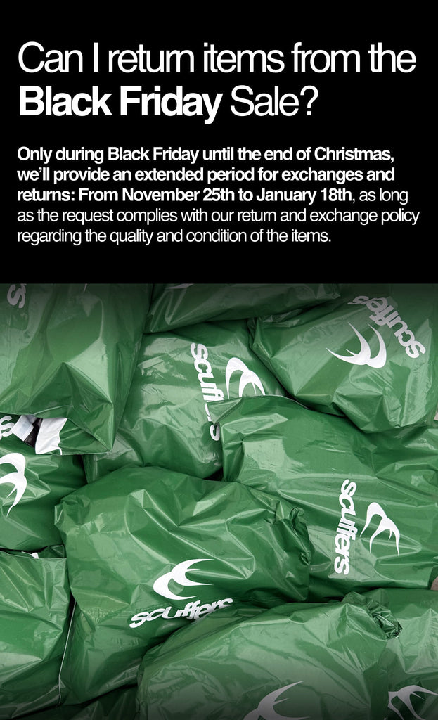 Only during Black Friday until the end of Christmas, we’ll provide an extended period for exchanges and returns: From November 25th to January 18th, as long as the request complies with our return and exchange policy regarding the quality and condition of the items.