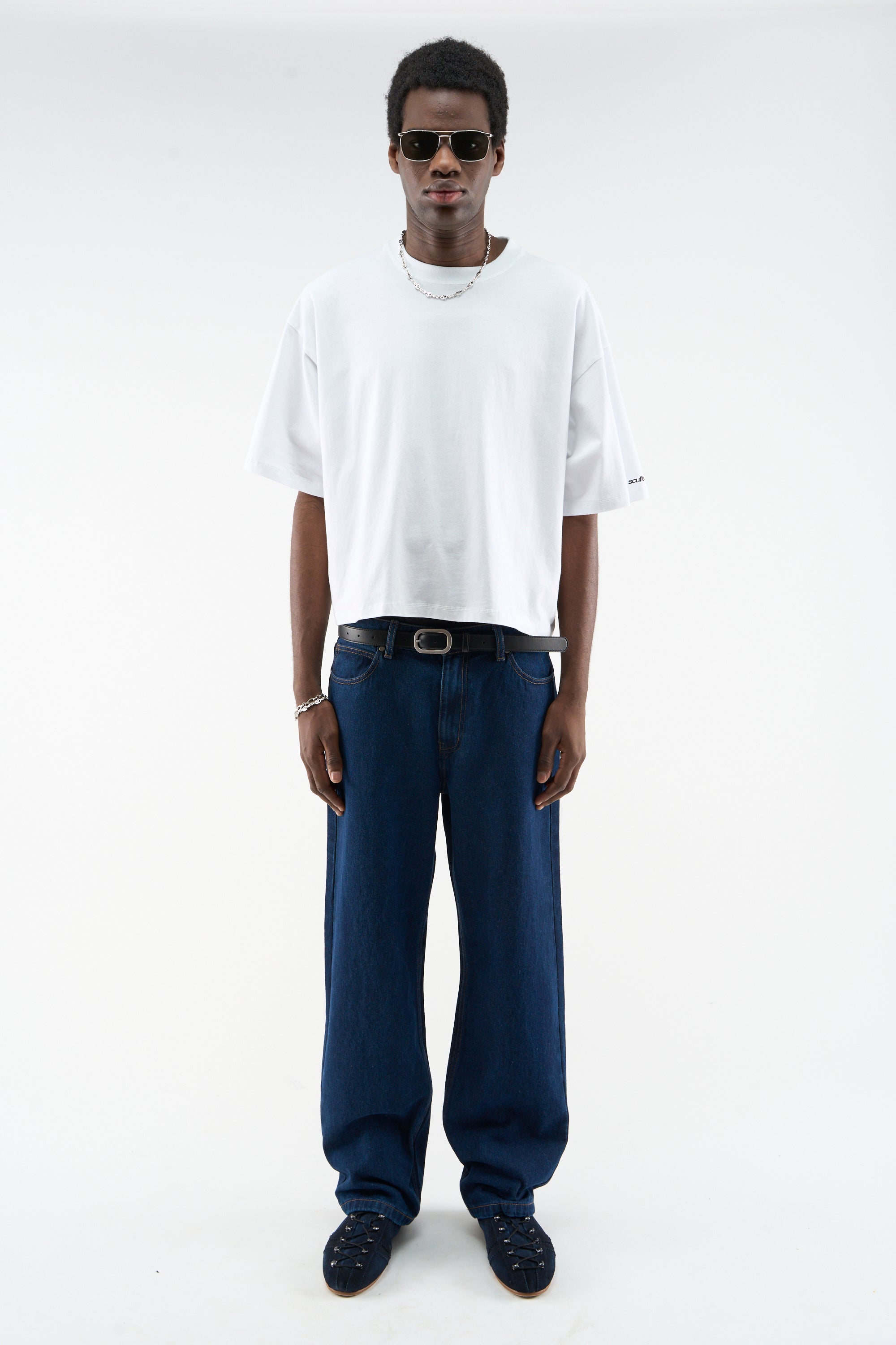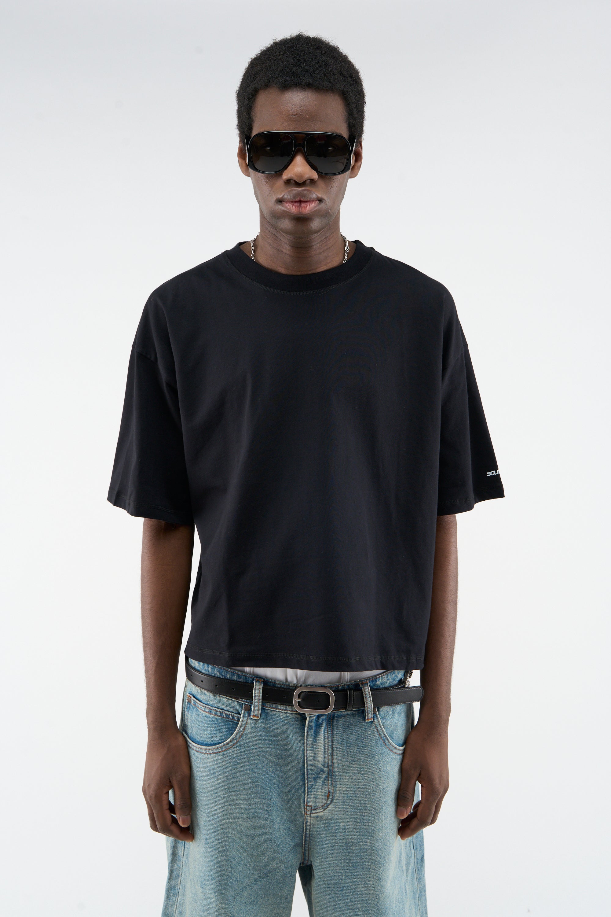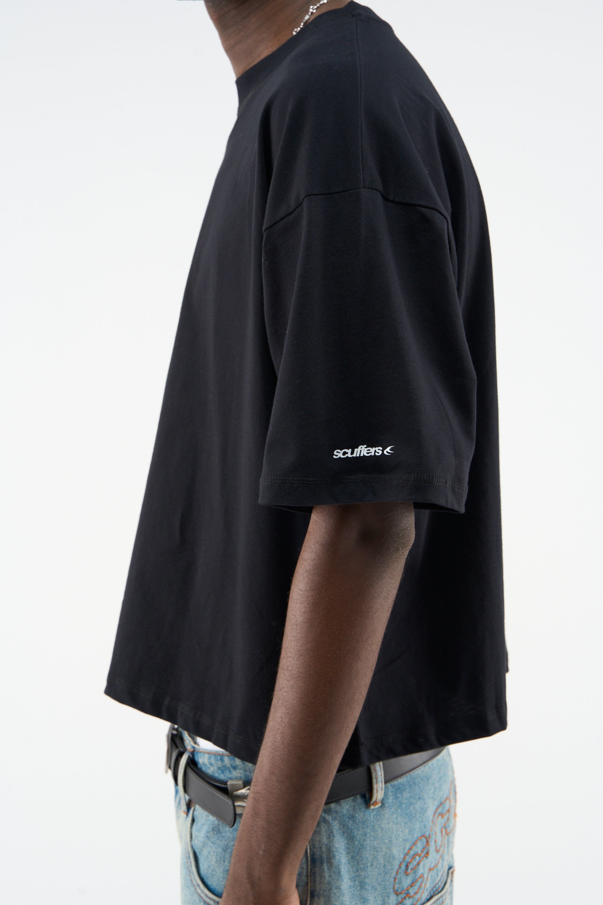 Pack 2 units. Basic black and white oversized t-shirts. 'Scuffers logo' imprinted on the right sleeve in white and black color.