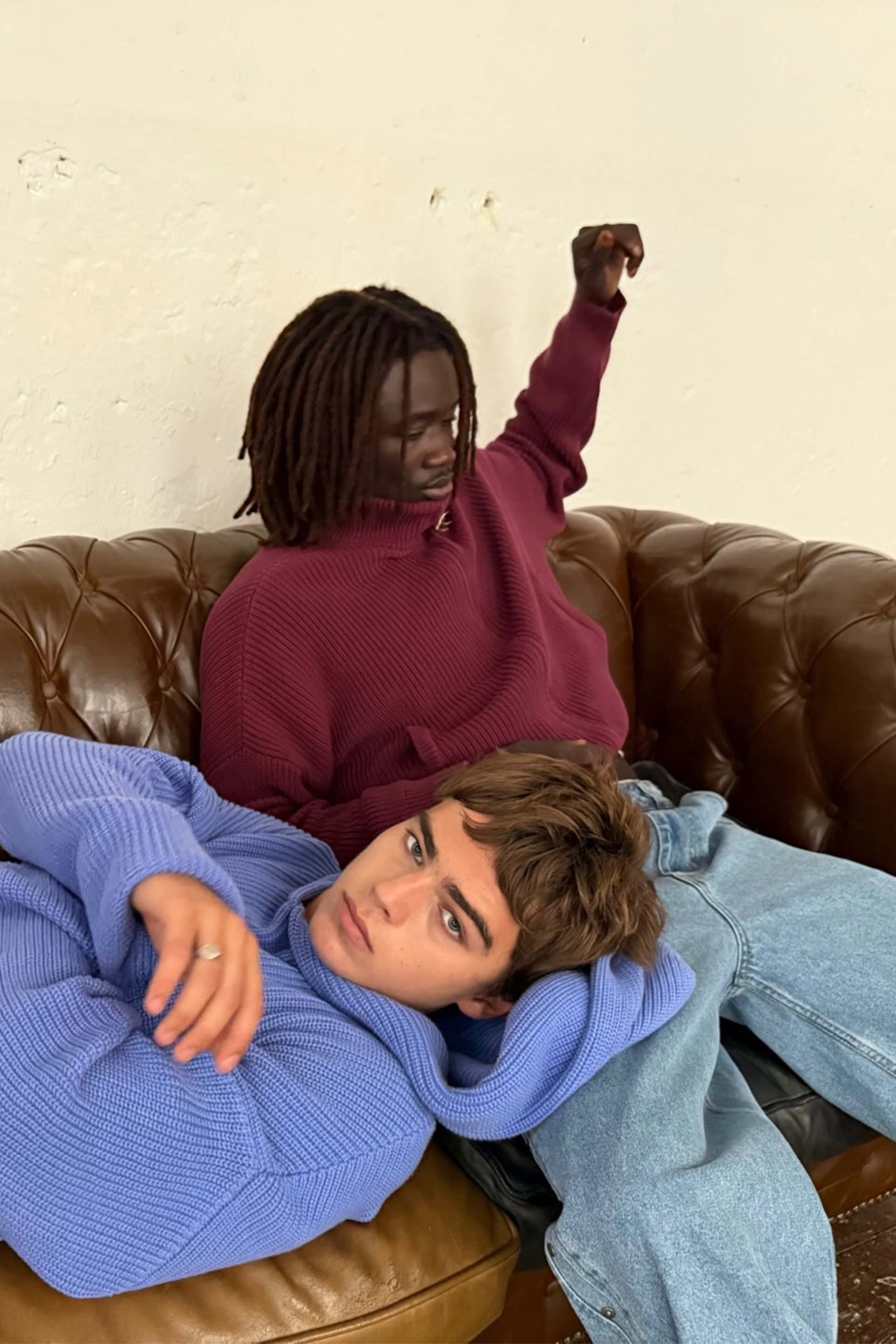 Burgundy Zip Cardigan in chunky cotton-blend knit. Features a relaxed fit, stand collar, and full zip closure with custom Scuffers logo pullers. Ribbed cuffs and hem with dropped shoulders and front slip pockets.