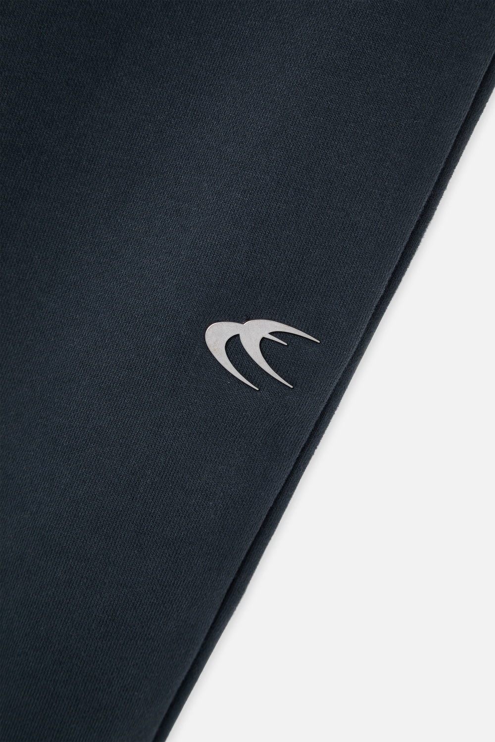 Dark Jogger Pants. Made from soft cotton fabric with a relaxed fit. Features an elastic waistband and cuffs for a secure and comfortable feel. Side pockets and a single back pocket for convenience. Minimalist design with a small embroidered logo on the leg. Pairs with the matching sweatshirt for a complete tracksuit look.