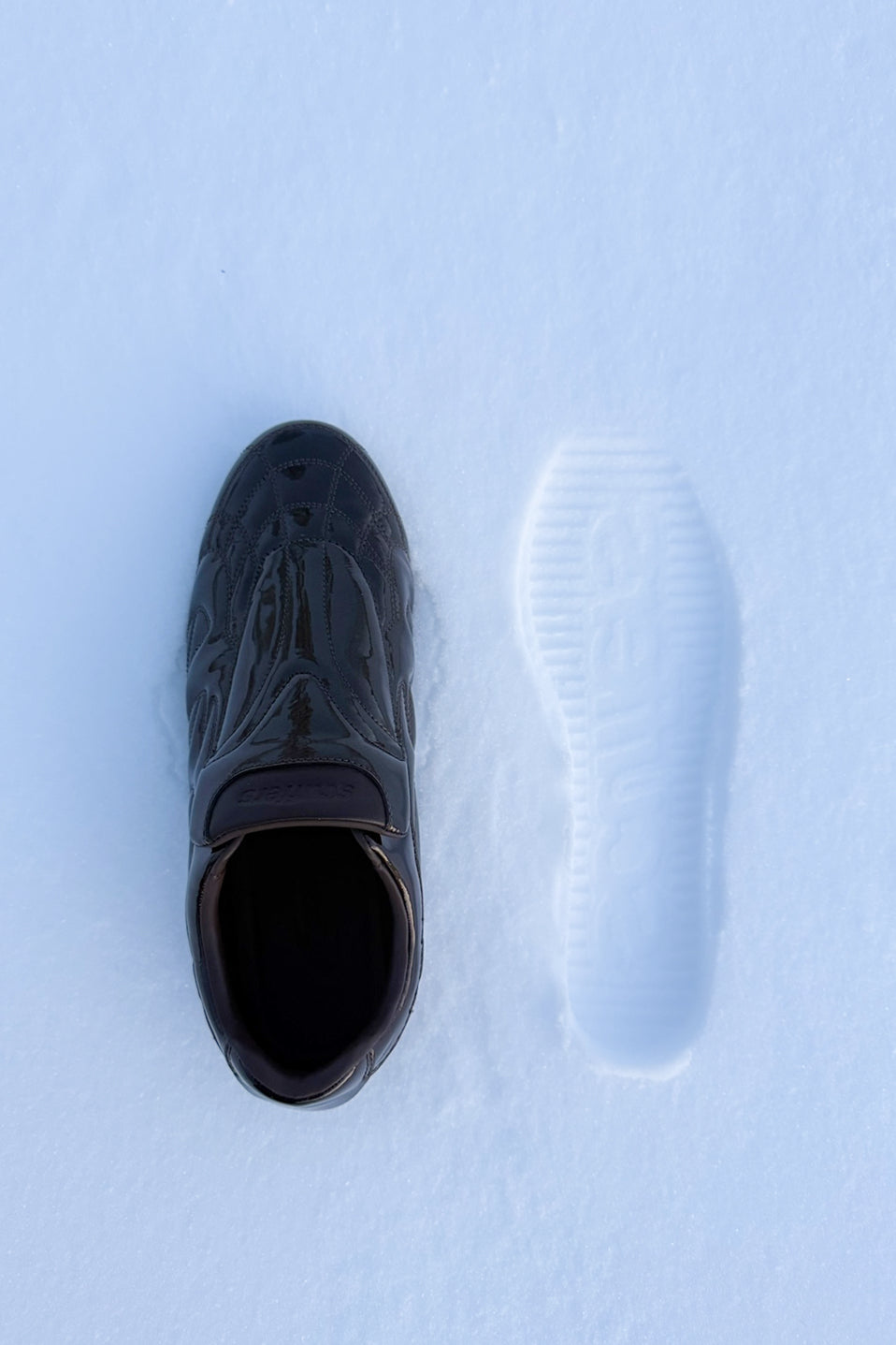 Brown Patent Leather Sneakers crafted from glossy patent leather in a rich brown hue. Features a sleek, minimalist design with subtle stitching details. The shoes have a rounded toe, cushioned inner lining for comfort, and a rubber sole with a tread for grip. Finished with a small embossed Scuffers logo on the tongue.